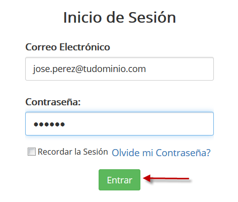 2. Colocar tu correo, contraseña y dar clic al botón "Entrar".